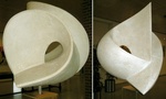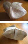 2010Bij dit werk heb ik een abstract object gecreëerd, waarbij het streven was om vloeiende overgangen tussen convexe, concave en rechte lijnen te realiseren en daarbij een goede balans te vinden. Door het gebruik van franse gietsteen in zijn neutrale kleur, komt het lijnenspel volledig tot zijn recht. Omdat bij het ontwerp is uitgegaan dat de sculptuur een plaats in de open lucht zou krijgen, is het zodanig geconstrueerd dat er geen water in zal blijven staan. De centrale "doorkijk" geeft het werk bovendien een luchtig accent. Een contrasterende sokkel van Cortenstaal (15 x 15 x 95 cm) benadrukt de intentie om de sculptuur in de buitenlucht te plaatsen.