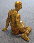 2015In polyester uitgevoerde modelstudie van half-zittend vrouwelijk naakt. Afwerking: brons imitatie.