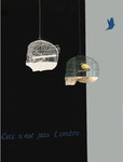 2013Oorspronkelijk heb ik de “kooi” gemaakt als een – autobiografisch te beschouwen – werk, waaraan een innerlijke strijd besloten ligt tussen expressieve creativiteit, gesymboliseerd door de kleurige vogel enerzijds en de beperkingen die ik mijzelf – onbewust – opleg, waardoor ik bij de uitvoering van een idee vrijwel altijd voor een traditionele benadering kies. De kooi benadrukt met het aangebrachte patina dan ook ‘een vastgeroest zitten in de traditie (classicisme?)’. Het openstaande deurtje van de kooi geeft echter aan dat ontsnapping mogelijk is. De kooi is uitgevoerd als menselijke schedel, die staat voor het brein waaruit de beperkingen voortkomen. Ook de kop van de vogel is ontdaan van zijn veren en toont de schedel waarin de creativiteit ligt besloten. De onderkaak is bij de kooi louter om praktische redenen weggelaten. Vervolgens is de vogel ook van zijn de onderkaak ontdaan om zo een balans tussen beide schedelvormen te creëren. In 2013 heb ik het werk uitgebreid tot een installatie en het – met een knipoog naar René Magritte – een surrealistische uitstraling heb gegeven.